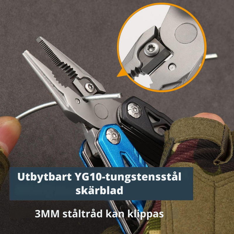 "Det här multitoolen har helt förbättrat mina utomhusaktiviteter. Den kompakta designen och de mångsidiga funktionerna gör den oumbärlig!